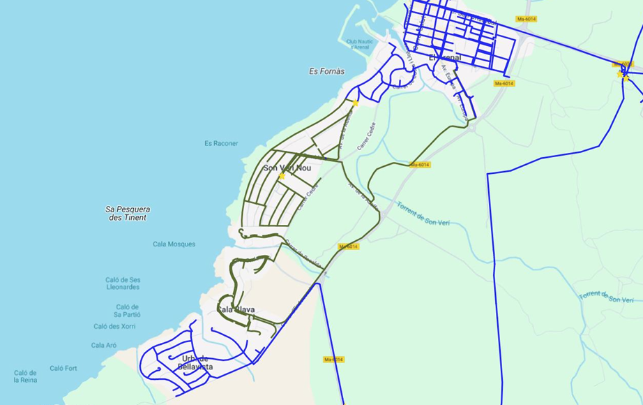 👉 Aqualia informa que a causa de unos trabajos de mejora en la red general de abastecimiento, el suministro de agua en zonas de Son Verí, Son Verí Nou y Cala Blava (zonas en verde) se verá afectado mañana jueves entre las 09:00h y las 17:00h aprox.